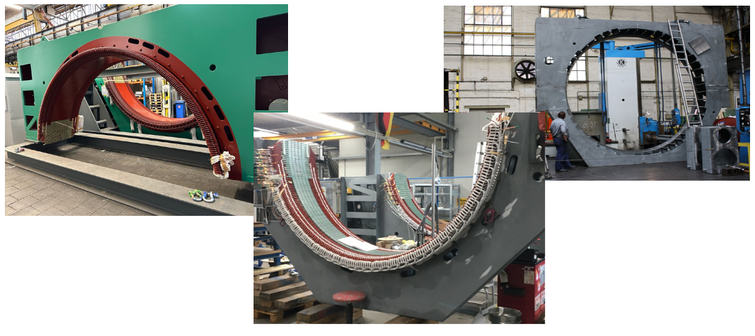 Calculated, designed, built: Replica of a split 44p, 3.2 MW stator for driving a slow-running piston compressor in the chemical industry.